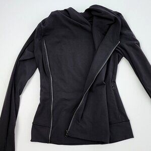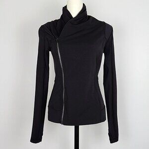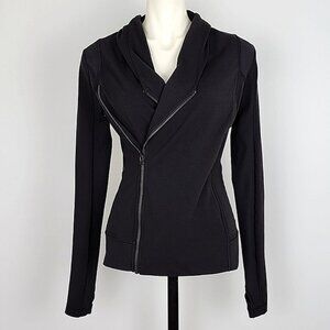 Lululemon Bhakti Yoga Jacket Black Assymetical Double Zipper High Collar Size 6