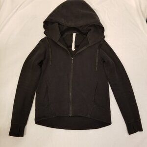 Lululemon Black Hooded Zip up Sweater Cotton US 4 Thick Warm Hoodie Small Fleecy