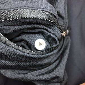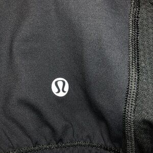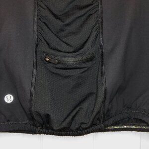 Older style Lululemon all black tank. Reinforced upper part with built-in mesh bra for extra support. Sweetheart, V neckline. Wide straps. looser fitting lower part with non-slip elastic waistband. Ruched panel down the back with zippered pocket. Excellent used condition.