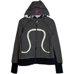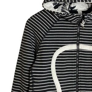 Lululemon Black White Horizontal Stripes Scuba Hoodie Thumb holes Full Zip 10