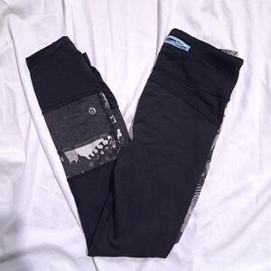 Lululemon | Black multicolored asymmetrical leggings with zippers