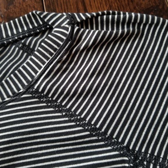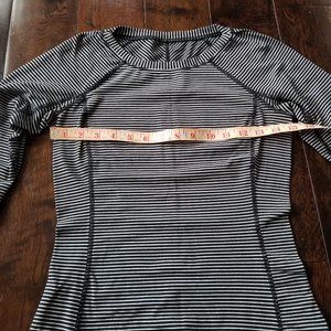 Lululemon Black&White Striped Long Sleeve Running Top. Thumb holes. Reflective detail on sleeves. Back waist zippered compartment. Tag is cut off otherwise excellent preowned condition by me! :)