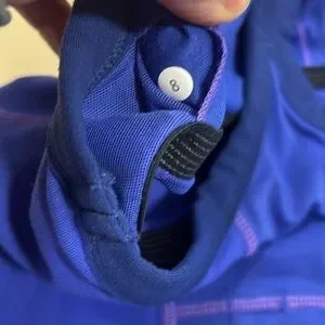 Lululemon racerback tank top in blue with pink accents. Perfect for workouts.