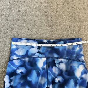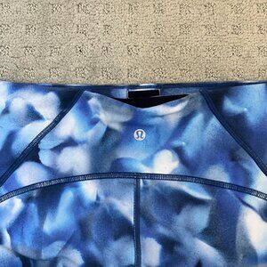 Blue abstract print yoga-style shorts from Lululemon. Too small so I'm selling them.