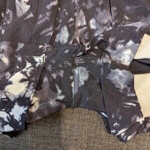 Lululemon running shorts in excellent used condition. These versatile 2016 shorts feature a striking black and white dusk dye pattern on premium Swift Ultra fabric. Performance details include four-way stretch, sweat-wicking technology, and UPF 50+ protection. The pleated cuff design adds a feminine touch to this technical piece.