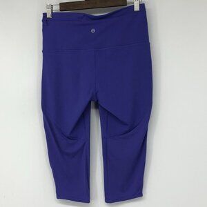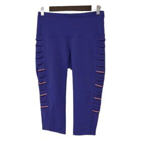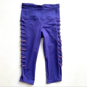 Lululemon Breezy Mesh cropped Capri leggings zip pocket Iris purple w/ orange 8