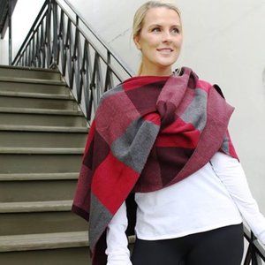 Lululemon Bundle Up Scarf Sweater Wrap in Cranberry Red Black & /Dark Slate Gray