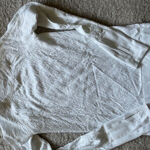 bundle of Lululemon cothing. Priced as a bundle to sell all. 1 thermal swiftly white long sleeve size 4 , 1 white back in action long sleeve size 2, reflective tights size 6 and tank top size 4. Shirts and tights gently used ( I have worn all of them only a handful of times). Tank top is well used but still has some life.