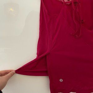 Pretty Lululemon camisole in a raspberry colour. Can be worn to work out or to hang out. Loose fit, made with lightweight, breathable fabric. Mesh paneling, slits in the sides and a tie in the back. No bra or support. Size 2, only worn a few times. Perfect condition.