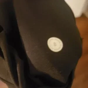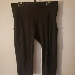 In new condition, no piling or wear. Measured from waist to end of leg 22.5 inches. It didn't sit or stay properly on me around knee.