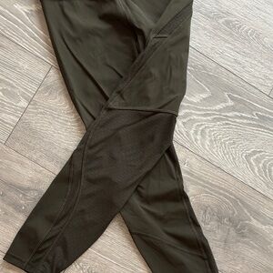 Chic olive green leggings. Ideal for fitness or everyday style. Ankle length. Mesh details. In new condition.