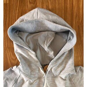 This Lululemon hoodie combines functionality and style, featuring a soft cotton blend fabric, adjustable drawstring hood, and a versatile light gray design.