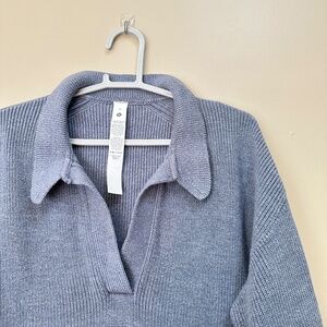 Lululemon Collared Merino Wool-Blend Sweater M Heather Belgian Blue Gray