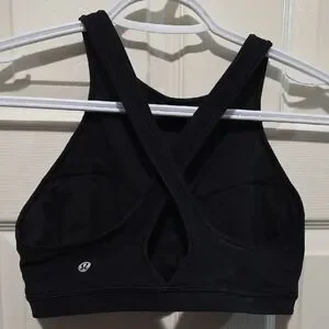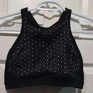 all-sport bra crossed straps and a high neckline so you can train hard without stopping to adjust. Laser-cut details add personality to your sweaty pursuits.