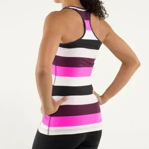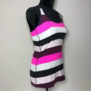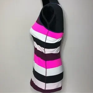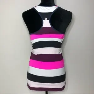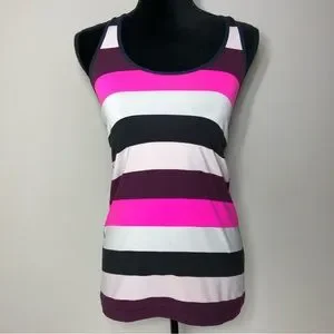 Lululemon Cool Racerback. Pow Stripe Raspberry Glo Light / Inkwell. Racerback straps allow freedom of movement. Luon light fabric is soft to the touch and breathable. Four-way stretch means this tank moves everywhere you do. Chafe-resistant flat seams help keep sweaty skin from getting irritated. Hip length helps this tank stay put and is great for layering. No size dot or rip tag. Measures size 6. In good condition. Please view all pictures and don’t forget to double check your measurements.