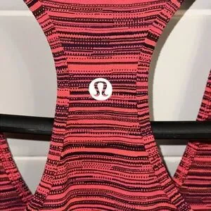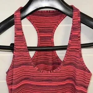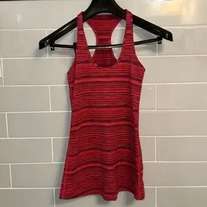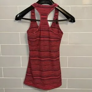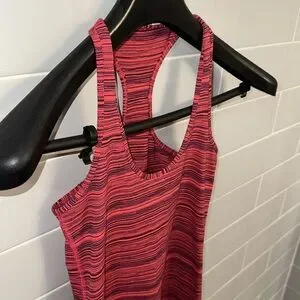 Lululemon Cool Racerback Tank in red and black heathered stripes.