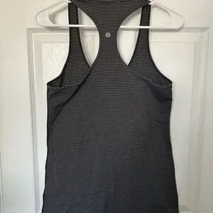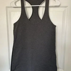 Experience the perfect blend of style and comfort with this fitted, ribbed tank top from Lululemon Athletica. Designed in a versatile gray color, it's crafted from stretchy fabric ideal for workouts or casual wear. The sleek design ensures a flattering fit, making it a must-have for any wardrobe.