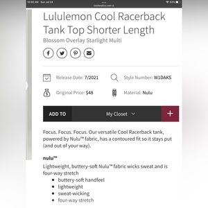 Lululemon Cool Racerback Tank Top Shorter Length
