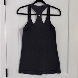 Lululemon gray and black muscle back tank top 15 inches pit a pit in great gently used condition No signs of wear