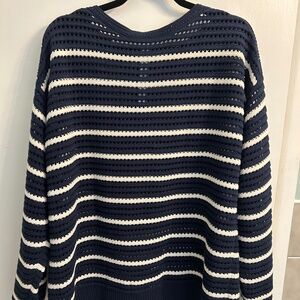 New with tag. Colours are club blue and light ivory. On the website for $124, but this colour way is sold out and will not be restocked. Size large. Relaxed fit, hip length.