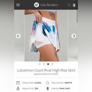 Lululemon Court Rival High Rise Skirt Women’s Size 14