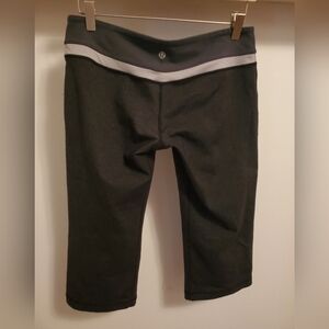Lululemon Crop leggings. Wide leg. Heathered dark grey / charcoal. 17" inseam. Size 8, see pictures for measurements. Excellent condition. Minor piling around the legging. No stain, no rip. Non smoking house.
