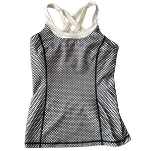 π This Lululemon Athletica tank combines style + performance, making it a must-have for your workout and athleisure wardrobe. Featuring a built-in bra, crossback strappy design, and a sleek black/white geometric print, itβs both supportive and flattering.