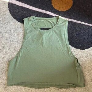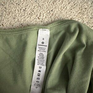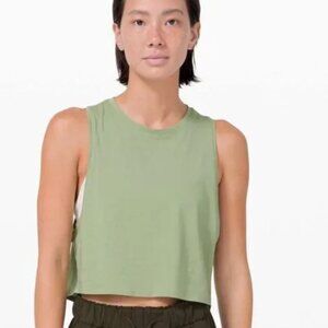 Top: Lululemon Cut Back Crop Tank Top Vista Green: 92% Pima Cotton, 8% Lycra Elastan. Size 8.