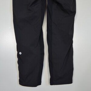 Lululemon Dance Studio Crop black pinstripe size 4. They have minor wash wear, overall they're in excellent used condition. Waist 13", rise 9", inseam 24.5".