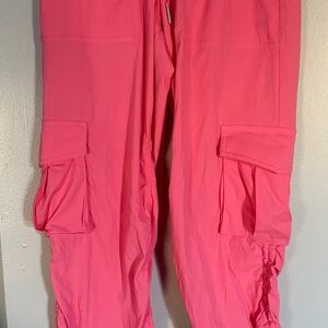 Stylish and comfortable pink cargo pants perfect for any casual outing. Features multiple pockets for convenience.