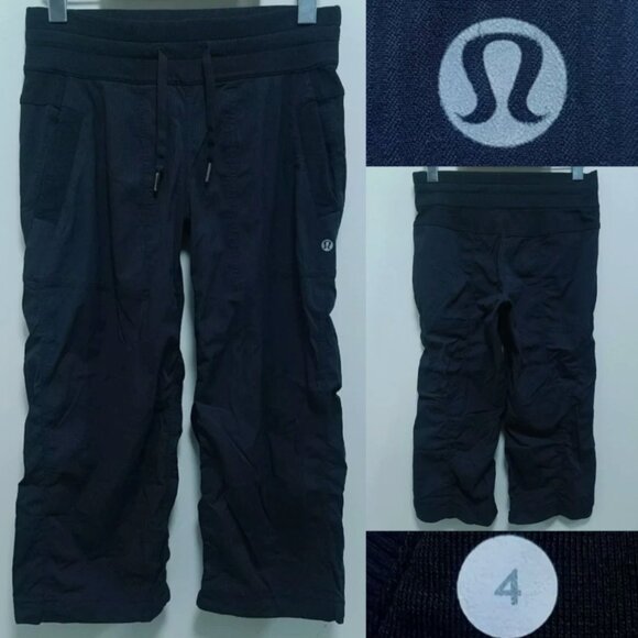 Lululemon Dance Studio Women's 4 XS Crop Black Capri Short Striped Ruffle Pants
