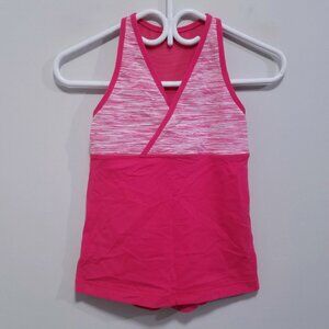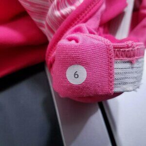 You are buying a Lululemon pink tank top size 6 small. 12 inch from arm pit to arm pit. 15 inch from top of collar at front to bottom. Great used condition! Minimal signs of wear. There's a small amount of pilling. Overall in great shape! Doesn't come with bra pad inserts. Very clean and no rips, stains or holes. From a smoke & pet free home.