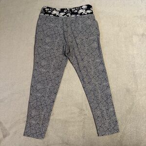Elevate your daily wardrobe with the sleek Lululemon Departure Pants in size 6, featuring a plush petal & black ghost floral pattern that exudes a unique blend of elegance and playful style. These high-rise, ankle-length pants are designed with a comfortable stretch fabric blend of polyamide and spandex, ensuring a snug fit that moves with you. The flat front and tapered leg style create a flattering silhouette, perfect for any casual occasion or travel adventure. Functionality meets fashion with this pair's easy-care fabric, machine washable for your convenience. Enjoy features like breathable material, easy pockets for essentials, and a smooth zip closure. Whether you're hitting the city streets or embarking on a holiday, these pants are versatile for all seasons – from the warm breezes of summer to the crisp air of fall. Embrace the blend of preppy and sporty themes with a touch of nautical charm.