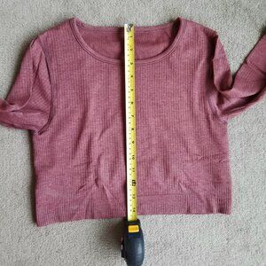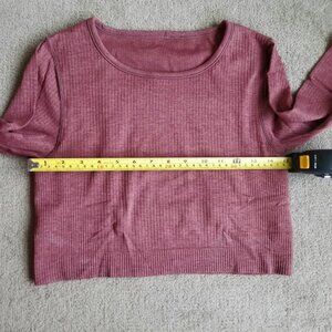 Excellent condition, no flaws, Lululemon Ebb to Street Long Sleeve Shirt in Smoky Red (colour darker than in pics- camera doesn't capture the colour properly), size S/M, dimensions in pic, from pet and smoke-free home.