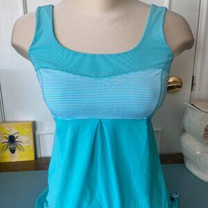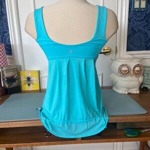Lululemon exercise running tank. Breathable Mesh body lets air move to help stay cool; lightweight fabric bust is cool to the touch and moisture wicking. Hem drawcord, flat seams help stop chafing. Light support. Meant to wear with your favourite bra