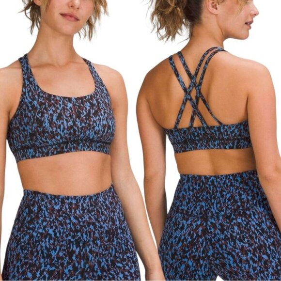 Lululemon Energy Bra *Medium Support Size 4 B–D Cups Leopard Camo Blue Nile