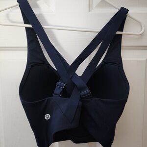 Navy Blue, lululemon Energy high-support sports bra. Size 36DDD. Good for high-impact activities such as running.