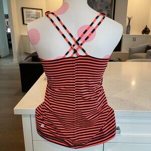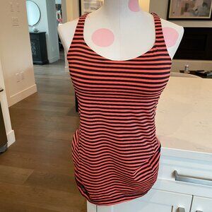 Lululemon Energy Tank Top Stripes w Built in Shelf Bra Orange & Navy Sz 8