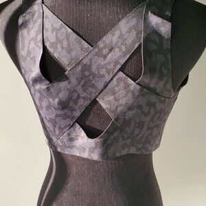 Lululemon, Enlite Bra, Zip Front, Camo, Deep Coal, Size E36,