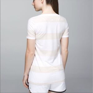 Lululemon Every Yogi Scoop Neck Casual Tee Stroll Stripe Heathered Cashew White