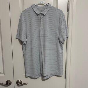 Lululemon stripped polo shirt. Can’t find the size dot but I believe it’s an XL. Excellent condition.