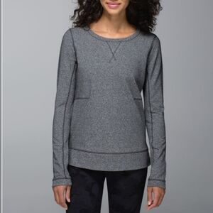 Lululemon Exhalation Pullover II. Heathered grey; color is called Heathered Speckled Black. Size 2, see pictures for measurements. Excellent condition. No stain, no rip. Non smoking house.