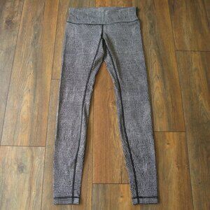 Lululemon Fall Net patterned leggings size 6. The fabric feels like Luxtreme. They're in excellent used condition, no flaws. Waist 13", rise 6.5", inseam 30".