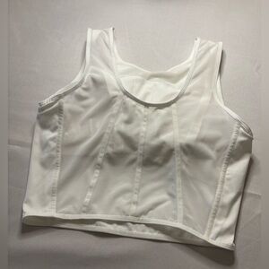 Bring a cool edge to your workout. This cropped training top features mesh fabric across the back for ventilation, while providing support where you need it.
