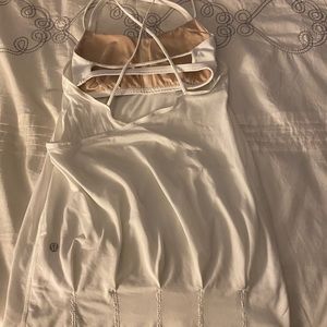 Fabric is - lightweight mesh fabric! Has anti stink micro diamond mesh outer layer! The bra is Luon.