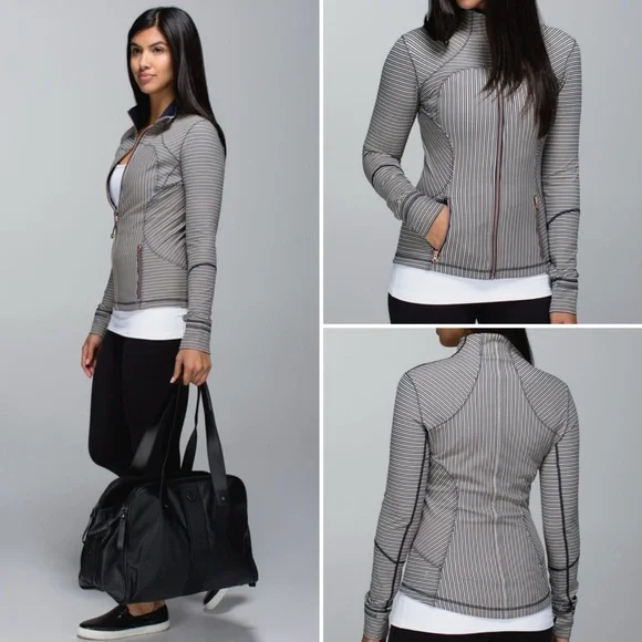 Excellent condition Lululemon Forme Jacket II *textured in pine stripe ink Mojave tan / inkwell