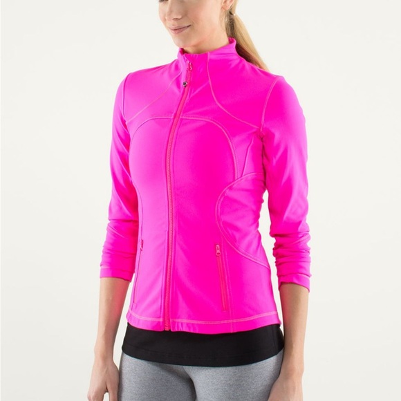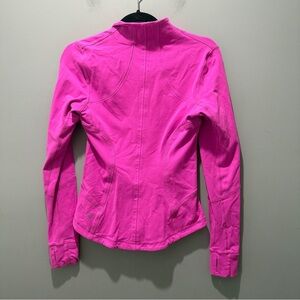A sleek hot pink jacket designed for active lifestyles. Lightweight, stretchy fabric offers comfortable movement. Full front zip and stand collar for easy layering. Zip pockets keep essentials secure. Vibrant pink adds a bold, sporty look.