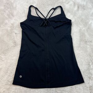 Lululemon Free To Be Tank Black Size 6 Built in Bra Criss Cross Back Athletic