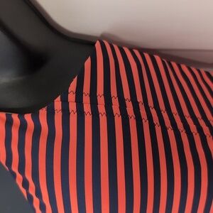 Very good gently used condition. Orange and navy stripes. Built in Bra. Moisture wicking.