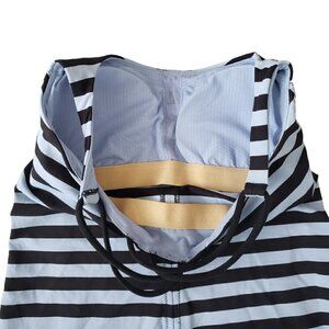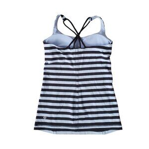 Lululemon Free To Be tank striped black and blue criss-cross back